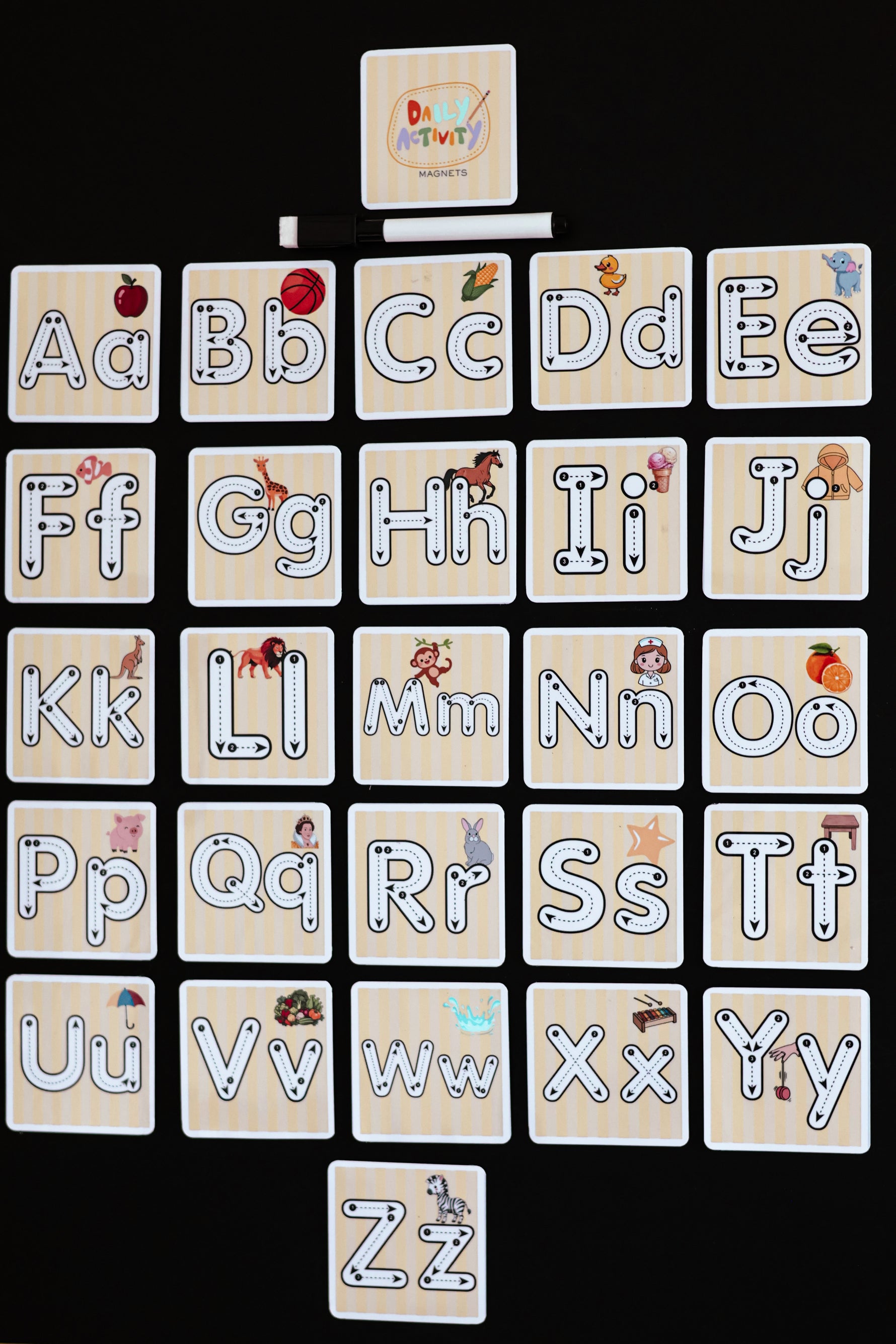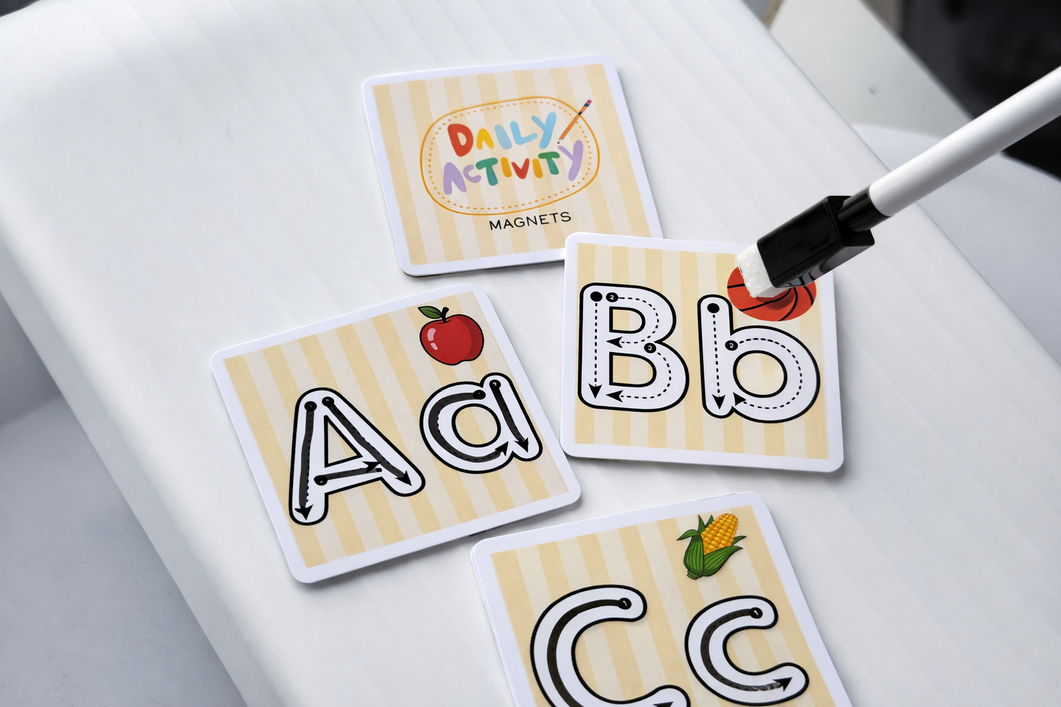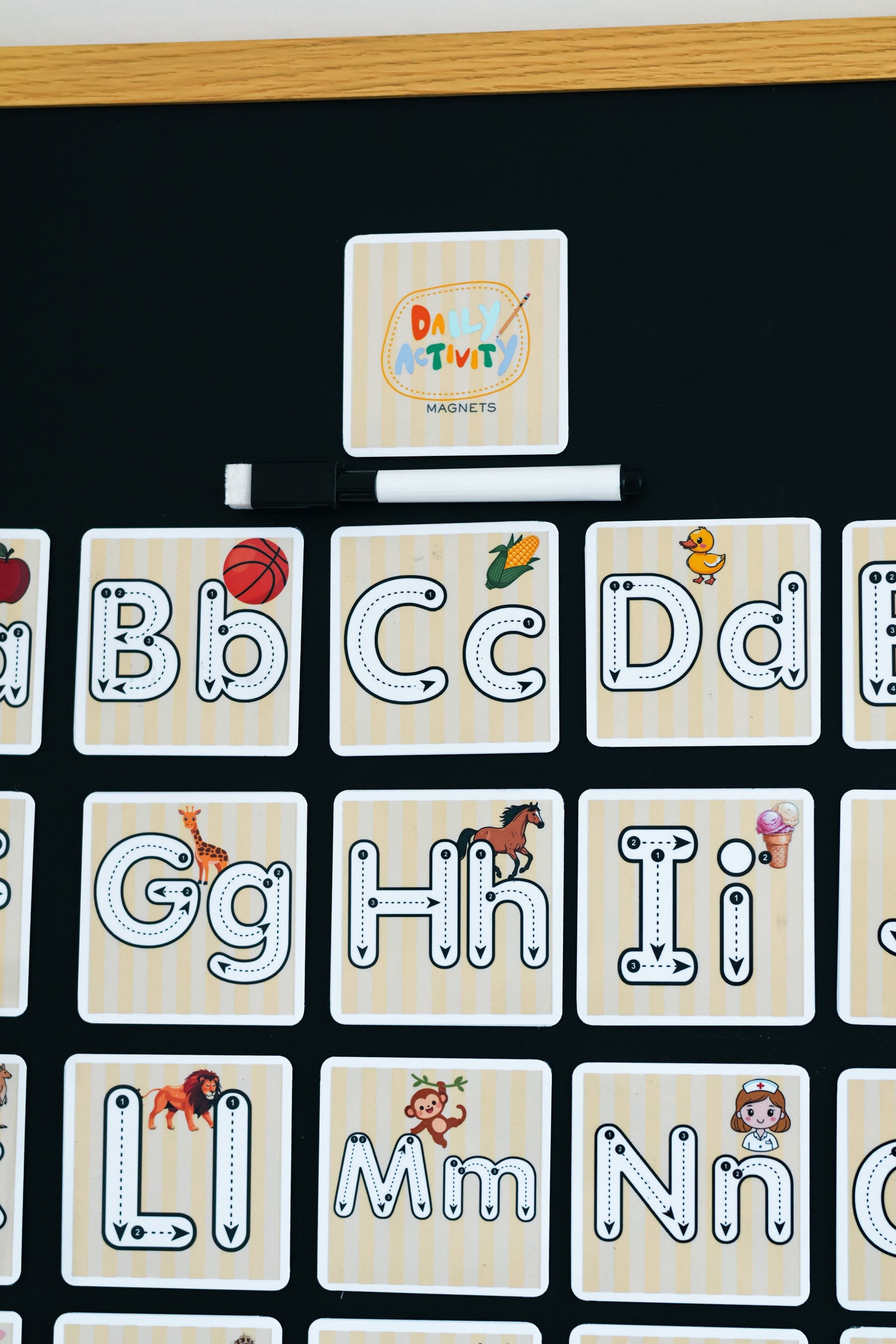 - Alphabet tracing magnets designed to make learning fun and mess-free